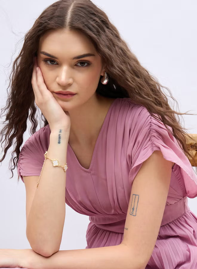 Women Purple Solid Petal Sleeves A-Line Midi Dress