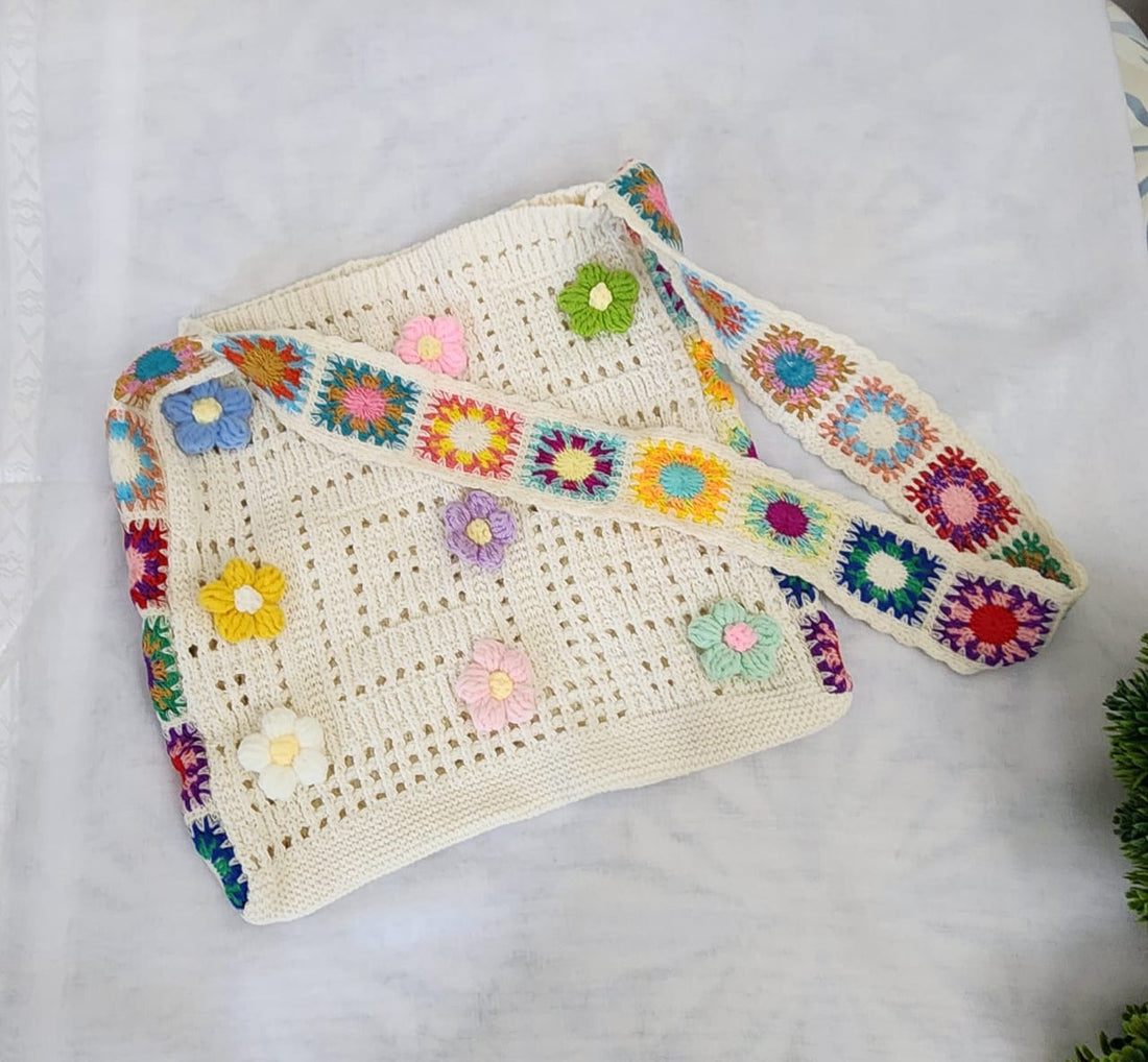 Elegant Crochet Bag for Women Beautiful Handmade Design Large Capacity Tote with Floral Embroidery Lightweight...